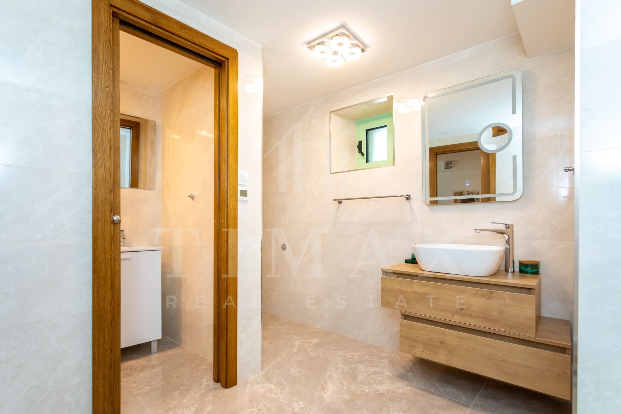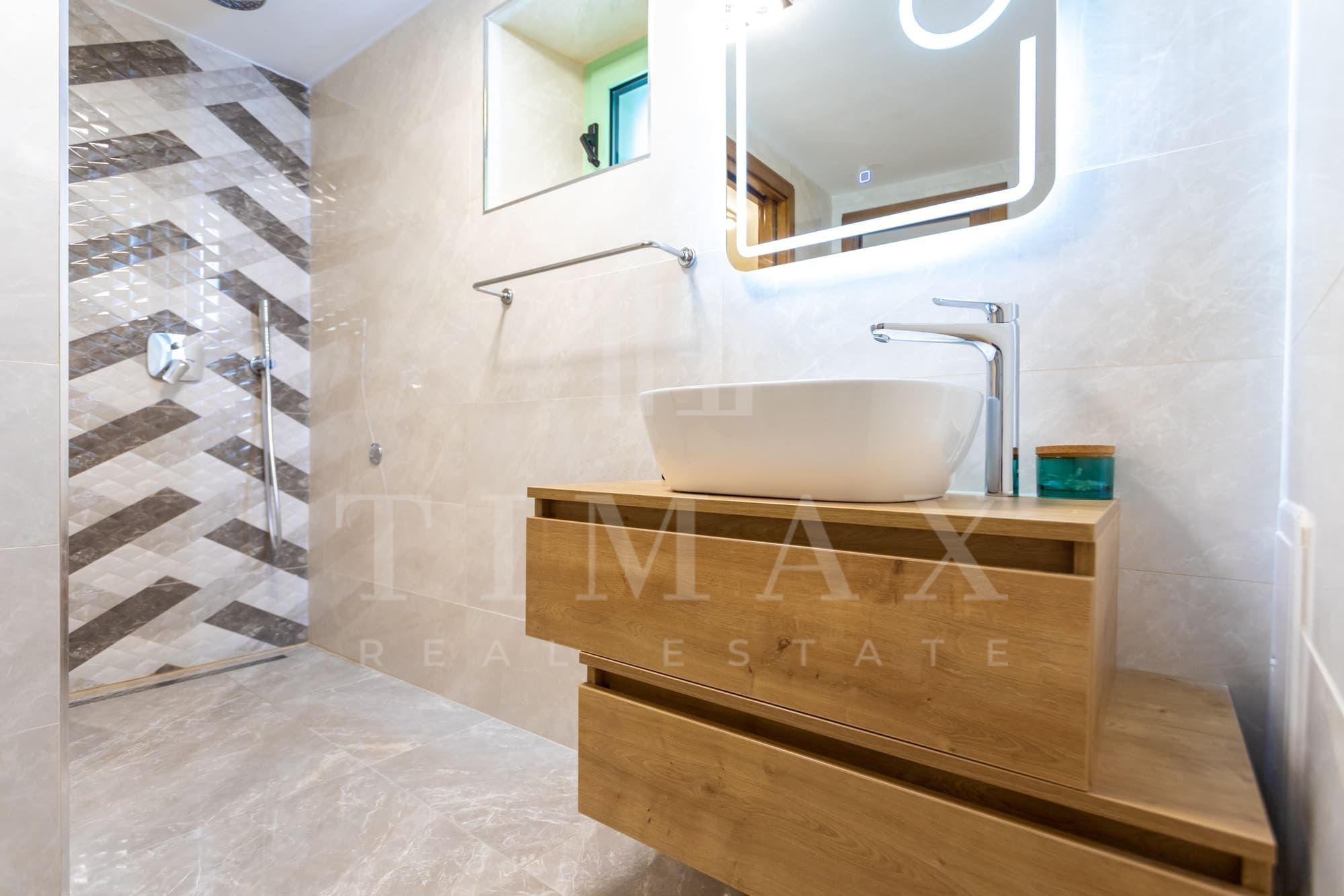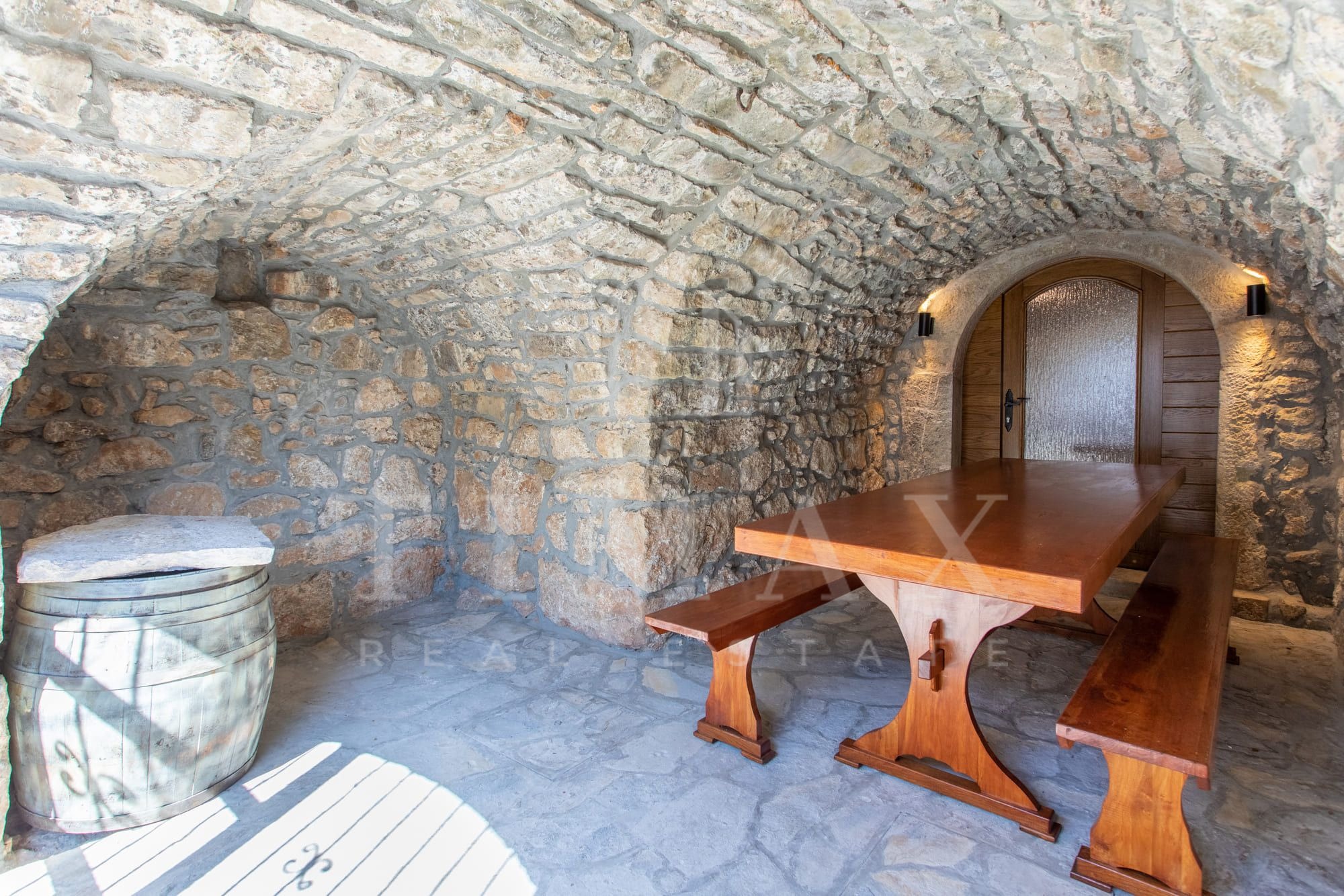 Kuća je rasprostranjena na četiri etaže od kojih se na prizemlju nalazi kamena konoba, prekrasno uređen dnevni boravak, kupaonica i wc. Na prvome katu smještena je prostrana i potpuno opremljena kuhinja sa otokom, blagovaonica, natkrivena terasa s lounge prostorom i roštiljem te kupaonica. Drugi kat se sastoji od dvije spavaće sobe, radne sobe i kupaonice dok se na trećem katu nalazi prostrana spavaća soba, kupaonica i terasa s panoramskim pogledom.