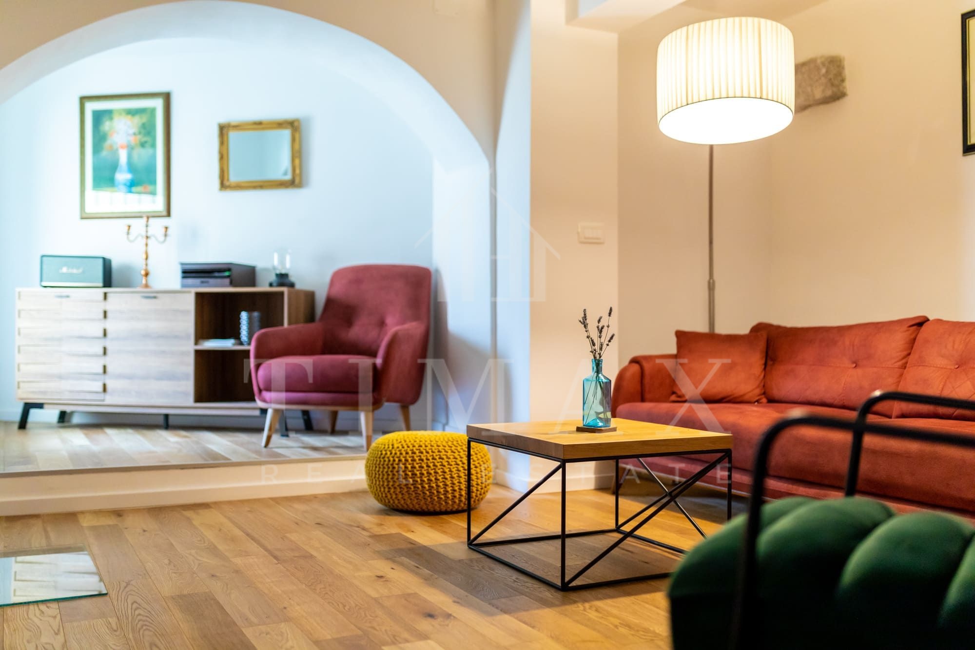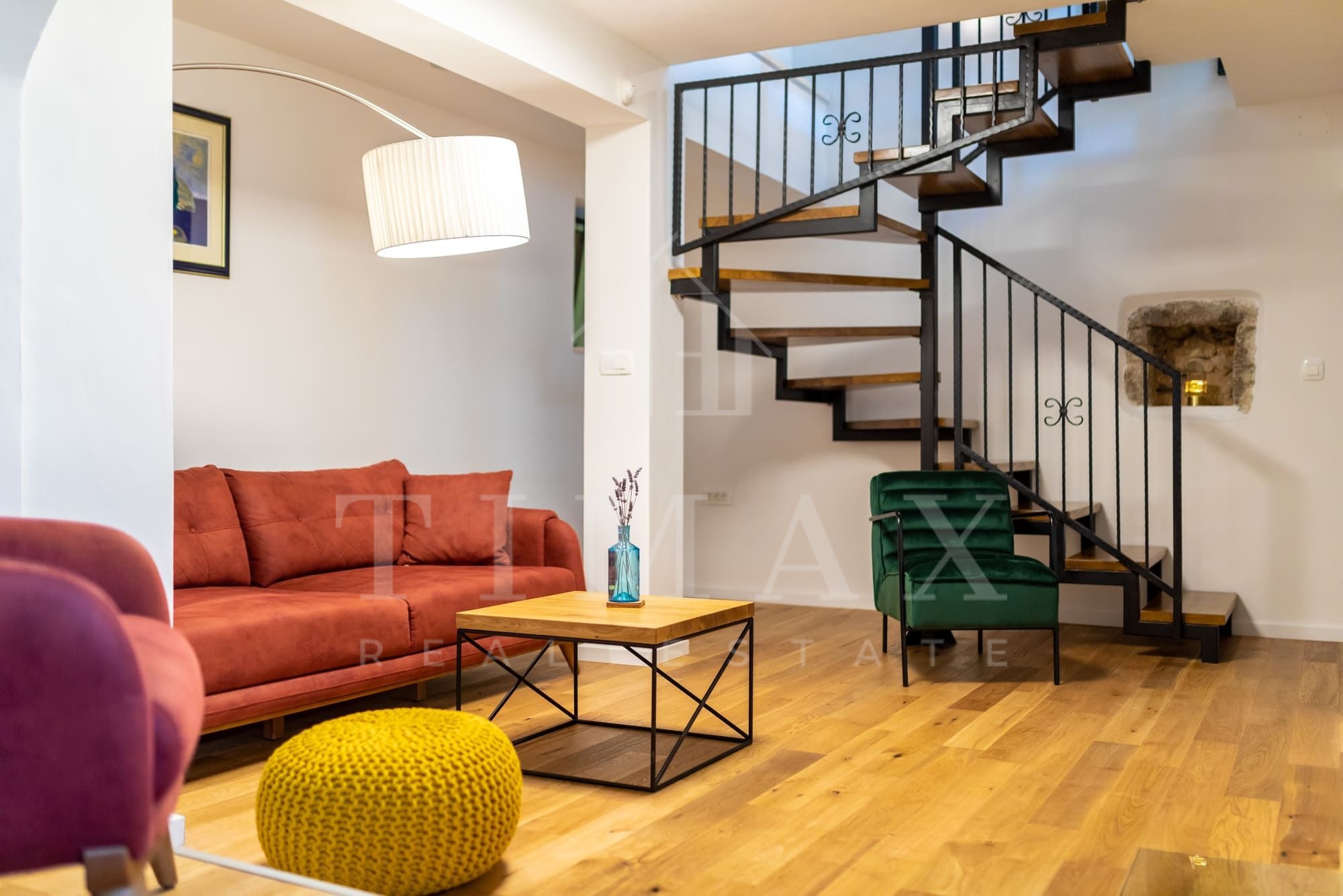 Šarm autohtone kamene kuće u spoju sa rustikalnim i modernim namještajem, prekrasnim detaljima, modernim i kvalitetnim materijalima, odličnom renovacijom te potpunom opremljenosti dobitna su kombinacija za bijeg od gradske vreve i idealan odmor u pitoresknim MIlohnićima na svega nekoliko minuta vožnje od plaže.