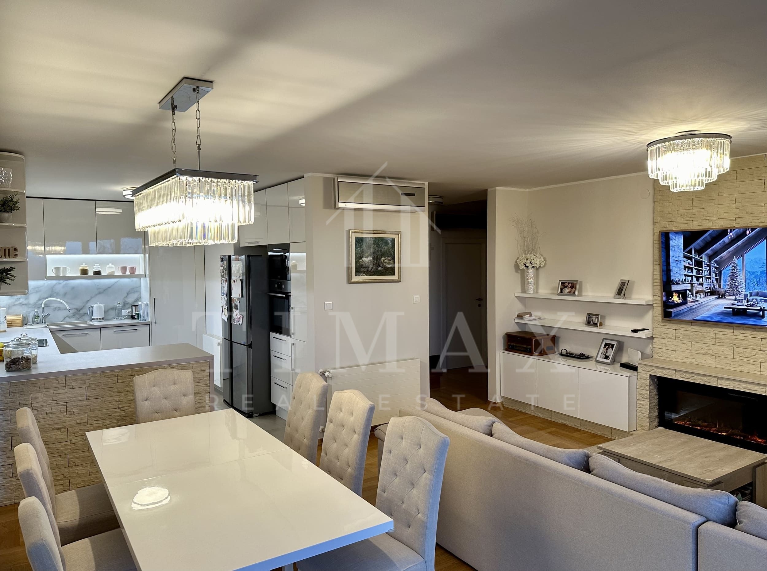 Ovaj predivan stan, potpuno renoviran i opremljen 2019. godine, izuzetno je prozračan s tri orijentacije – istok, jug i zapad. Prostrani dnevni boravak, spojen s blagovaonicom i kuhinjom, stvara savršen prostor za okupljanje, dok terasa pruža neometan panoramski pogled na grad. Kuhinja je opremljena vrhunskim aparatima i skrivenom ostavom, dok su spavaće sobe dovoljno prostrane za udoban život.