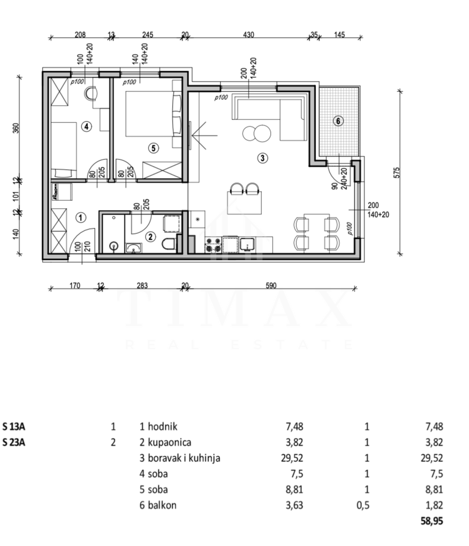 Trosoban stan S23B na drugom katu, 58,95 m2